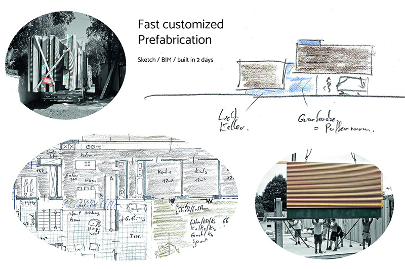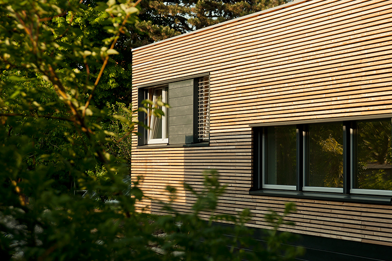 The access to the building site was limited. The neighbours shouldn´t be disturbed too much and the client got his fourth child. The precisely drawn BIM (Building Information Model) allowed a very high degree of prefabrication - including the complete fascade.