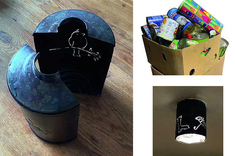 Ralph Aichner aus Steyr sammelt alte Dosen. Man kann ihm aber auch welche bringen und Sonderwünsche äußern. Diese Dosen werden vom Architekt im Kontext weiterverarbeitet und installiert. Außerdem verwende ich Altholz von Baustellenabbrüchen, um im selben Objekt z.B. eine Küchenbeleuchtung mit Downlights zu fertigen. Gegebenfalls mache ich als Architekt nur das Konzept und überlasse den Bauherrn die Arbeit in Eigenleistung.