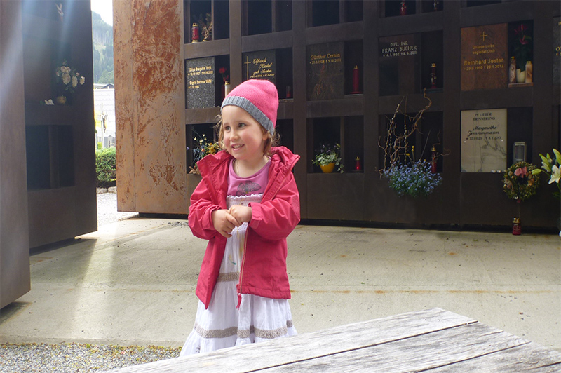 The ritual place combines an urn-cementary with a memorial for unborn children. The paintings for the memorial were done by the artist Jutta Katharina Kiechl. Beeing located at the corner of the huge cementary opposite of the Wiltener Basilika in Innsbruck, the place offers silence and shelter. The concept is based on the quality of the "inbetween" - space.