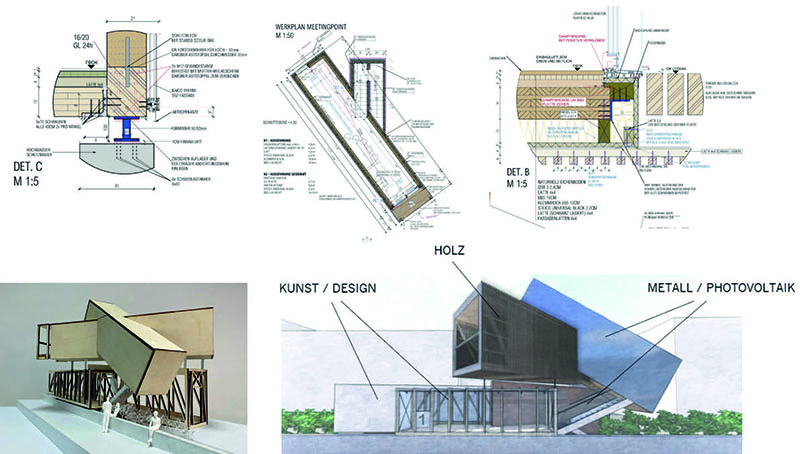 - Leitung des ENTWURFS bei den Abschlussprojekten der BAUHANDWERKERSCHULE der Zimmerer. Die Projekte werden in kurzer Zeit entworfen, statisch durchgerechnet und hochbautechnisch baufähig durchdetailiert