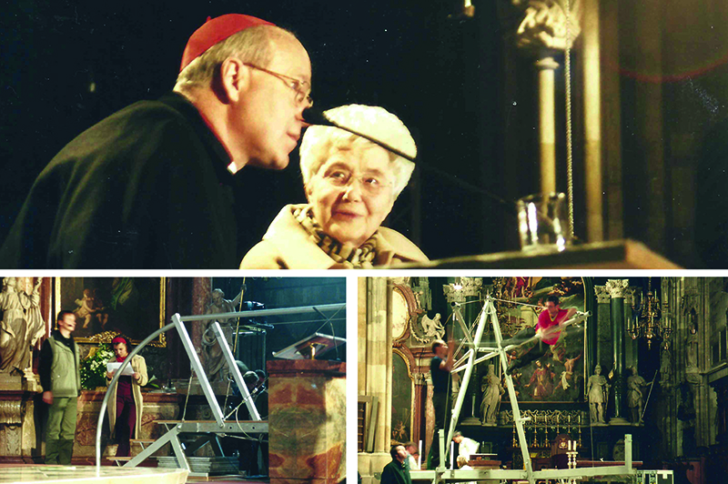 "..." Kein Zitat gefunden. Anfangs eher sprachlos, äußerste sich Kardinal Christoph Schönborn an der Seite von Chiara Lubich erfreut über den jugendlichen Erfindergeist. Erfreulich zu erwähnen ist, dass der Kardinal die temporäre Installation im Altarraum des Stephansdoms für eine große Jugendmesse mit Musik und Performances erlaubt und persönlich benutzt hat.