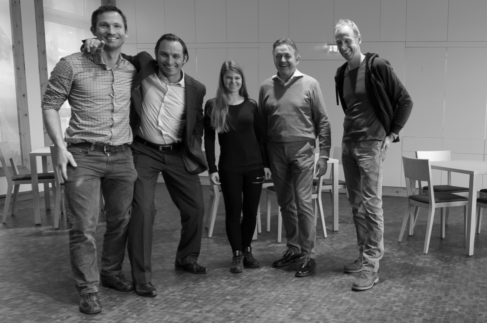 Photo from the left to the right: Walter Klasz, Christian Grote, Christina Lair, Günther Kortschak, Daniel Steindl (Prof. at the HTL-Imst - Collaboration in the last phase with the multifunctional integrated wall)